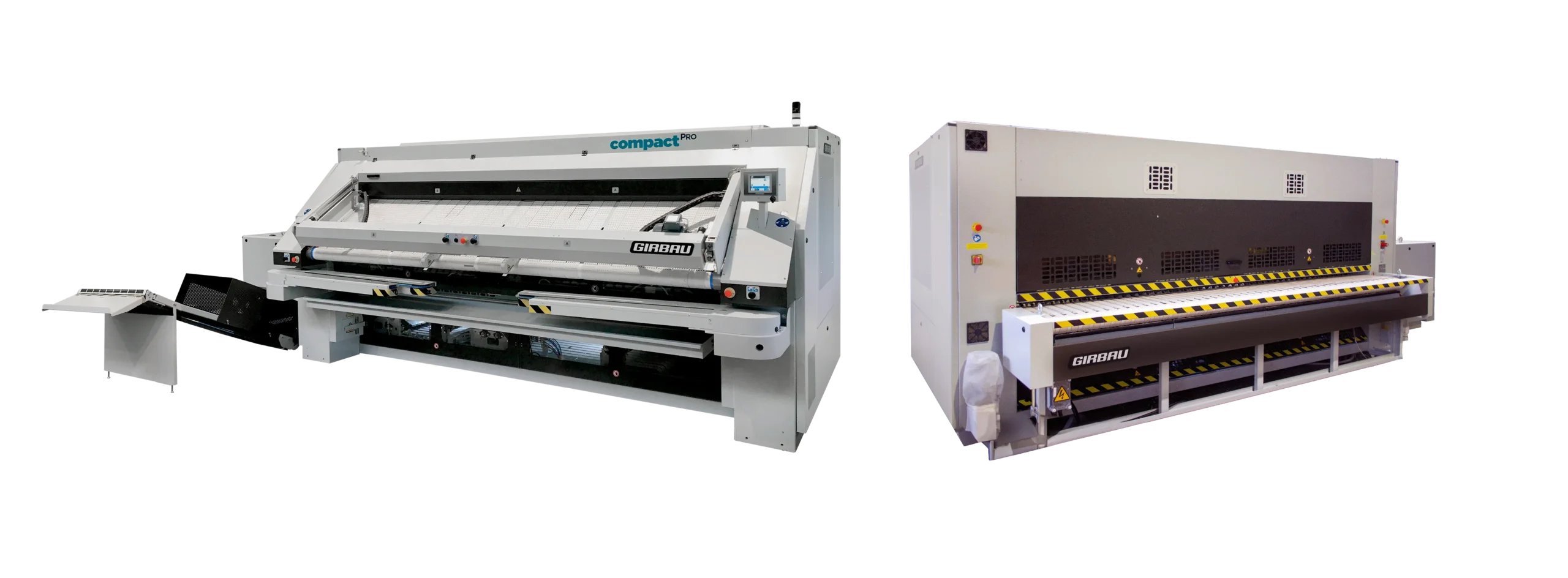 The Girbau Compact PRO offers the perfect compact ironing solution for professional laundries seeking high productivity and premium finishing quality within a limited space. Positioned in the mid-production range — above the PB wall ironers and just below Girbau’s complete automatic ironing lines