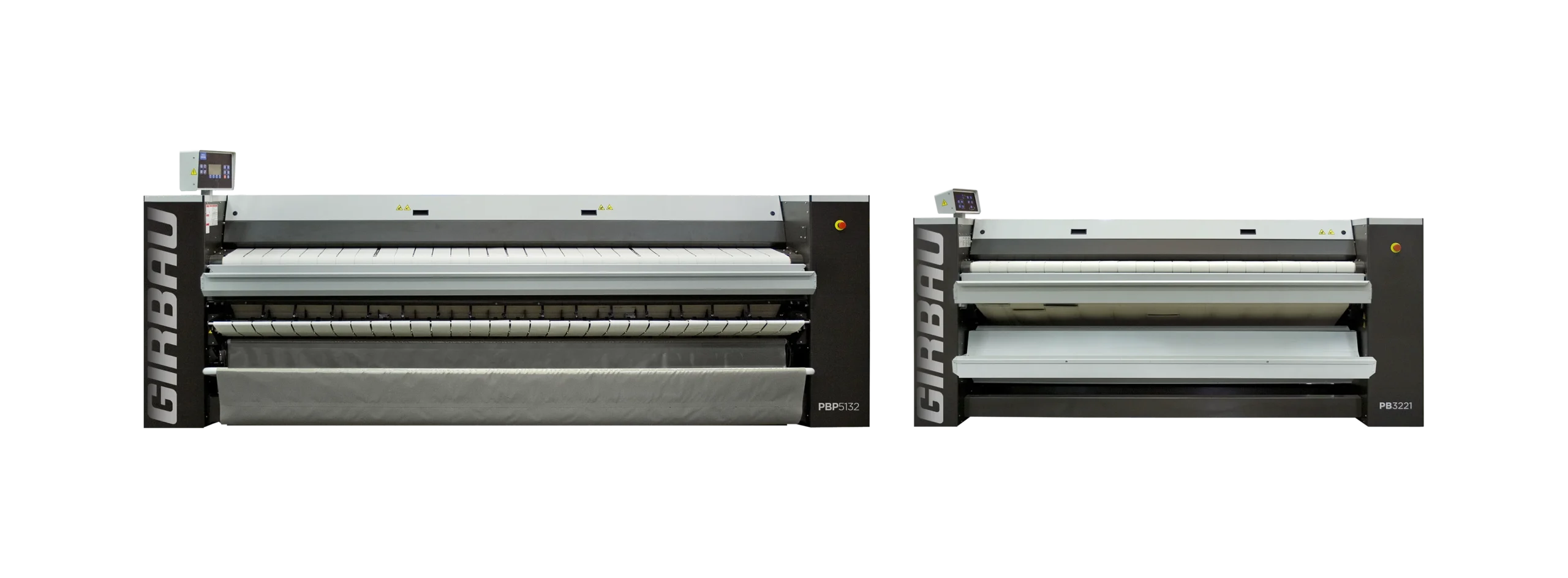mangle PB de Girbau para lavandería industrial, con sistema de planchado de ropa plana, cilindro de alta calidad y salida frontal.